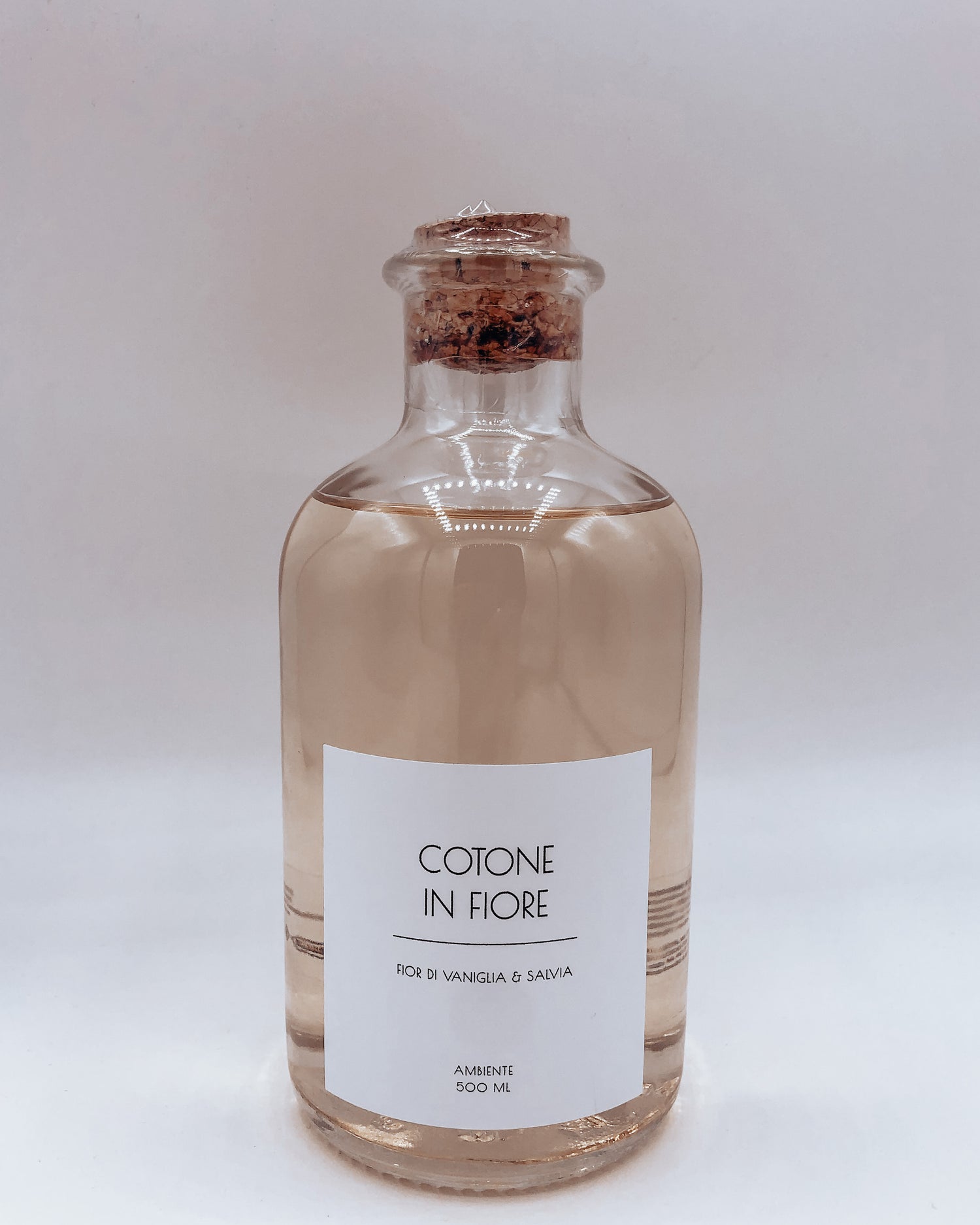 500 ml, contenitore vetro trasparente , consegnato con bastoncini in rattan.
