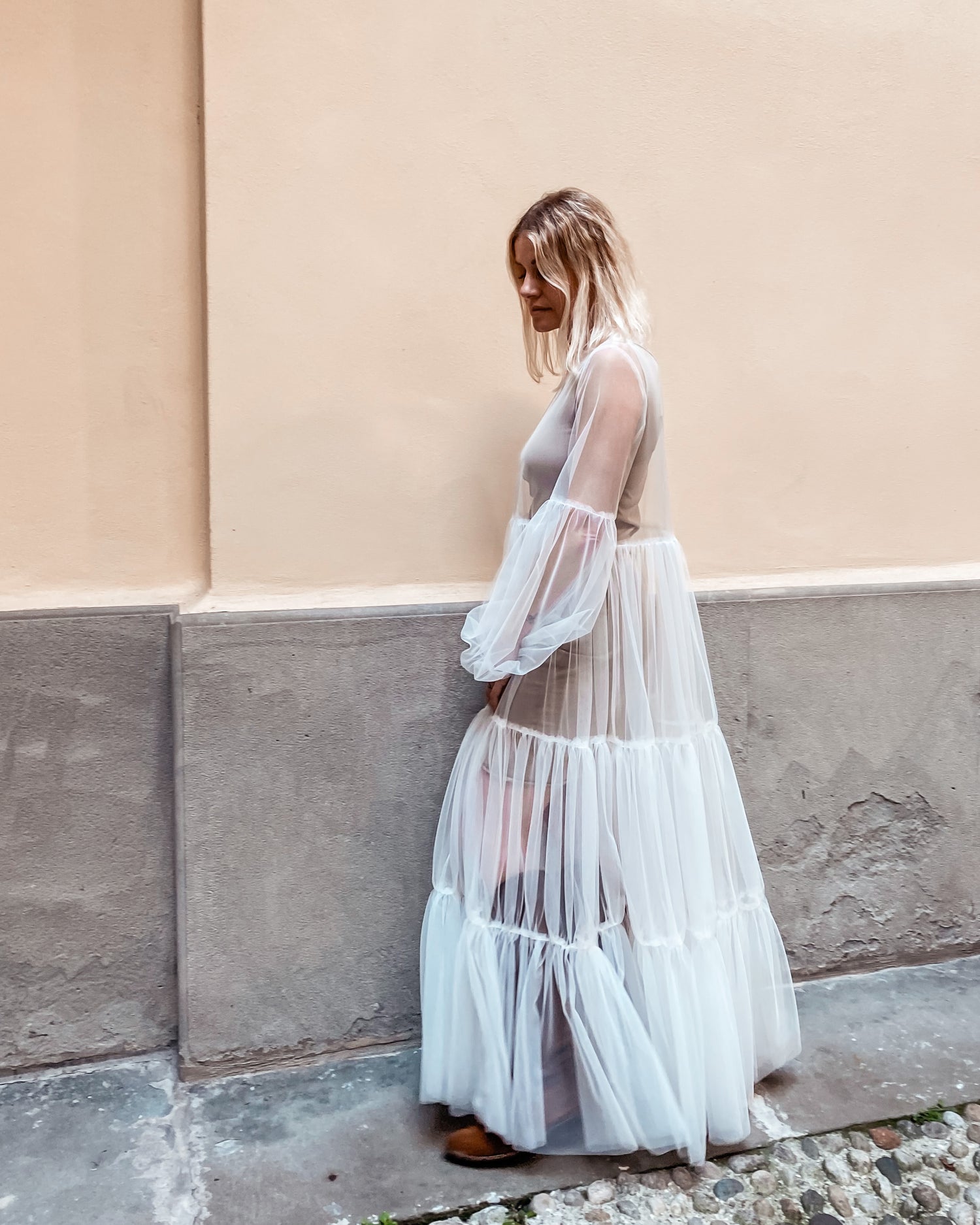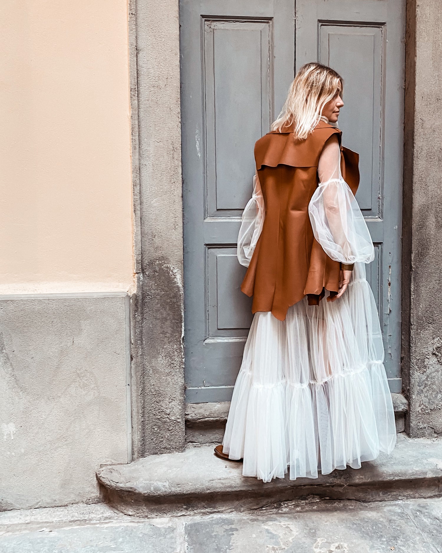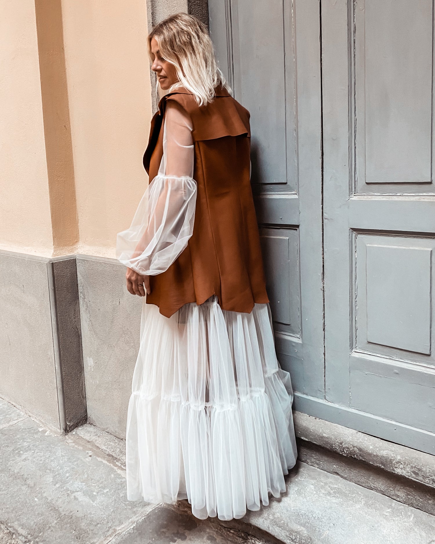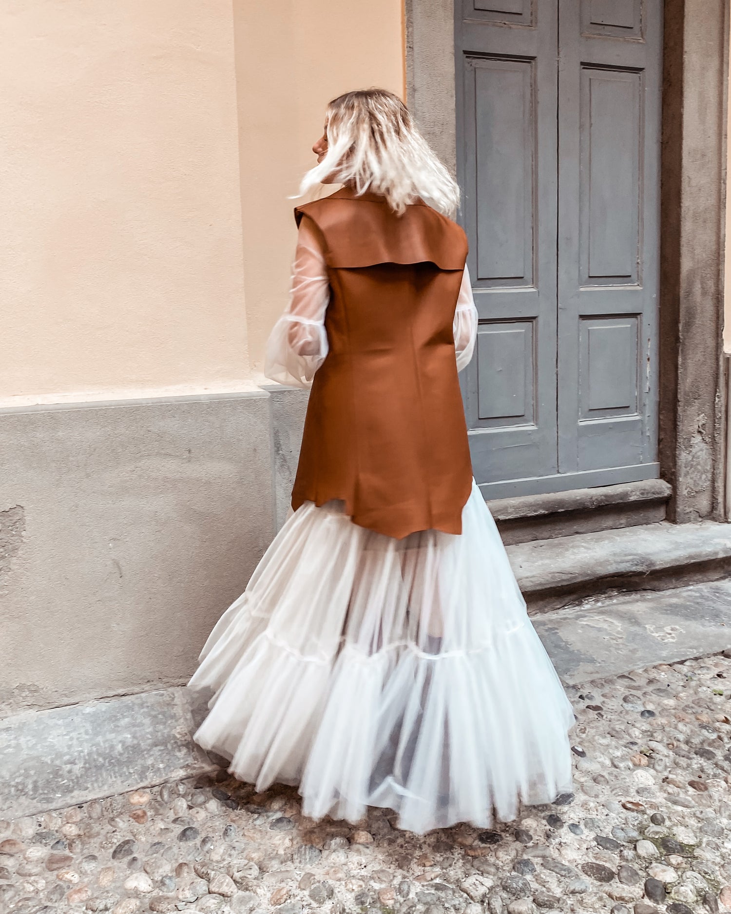Luce - abito in tulle , balze , manica a palloncino + mini abito in Jersey stretch uso servizio . ( non comprende il gilet di nappa )