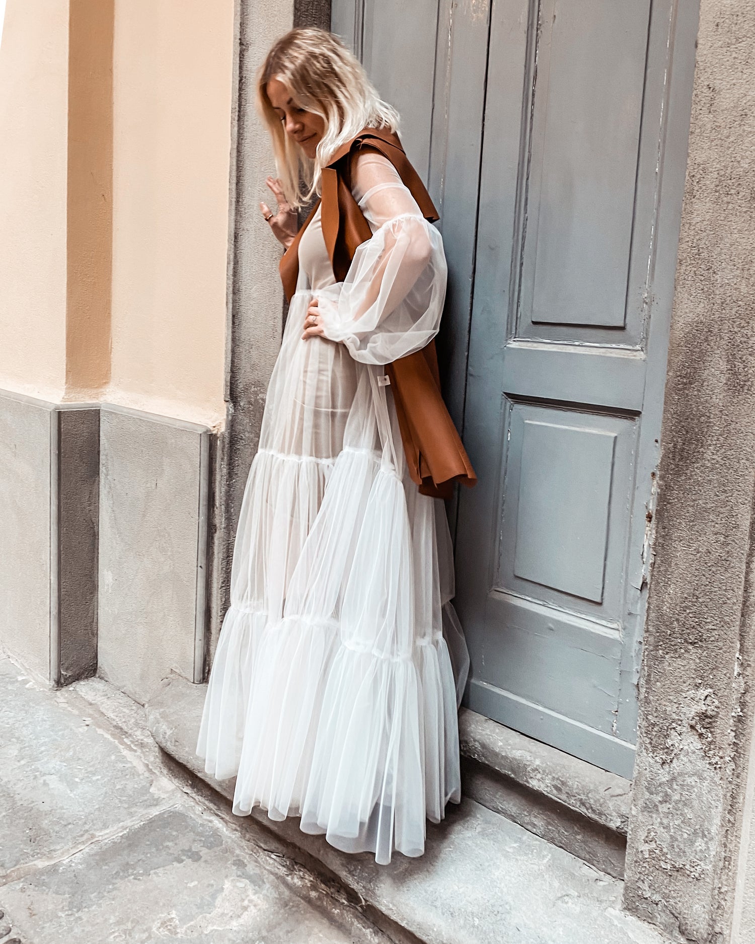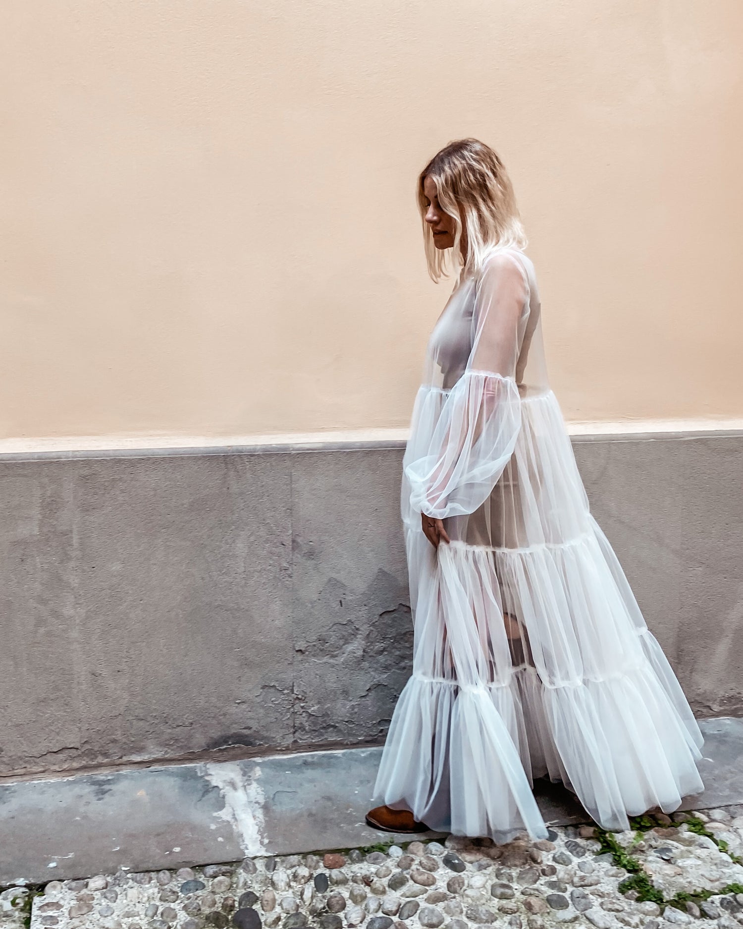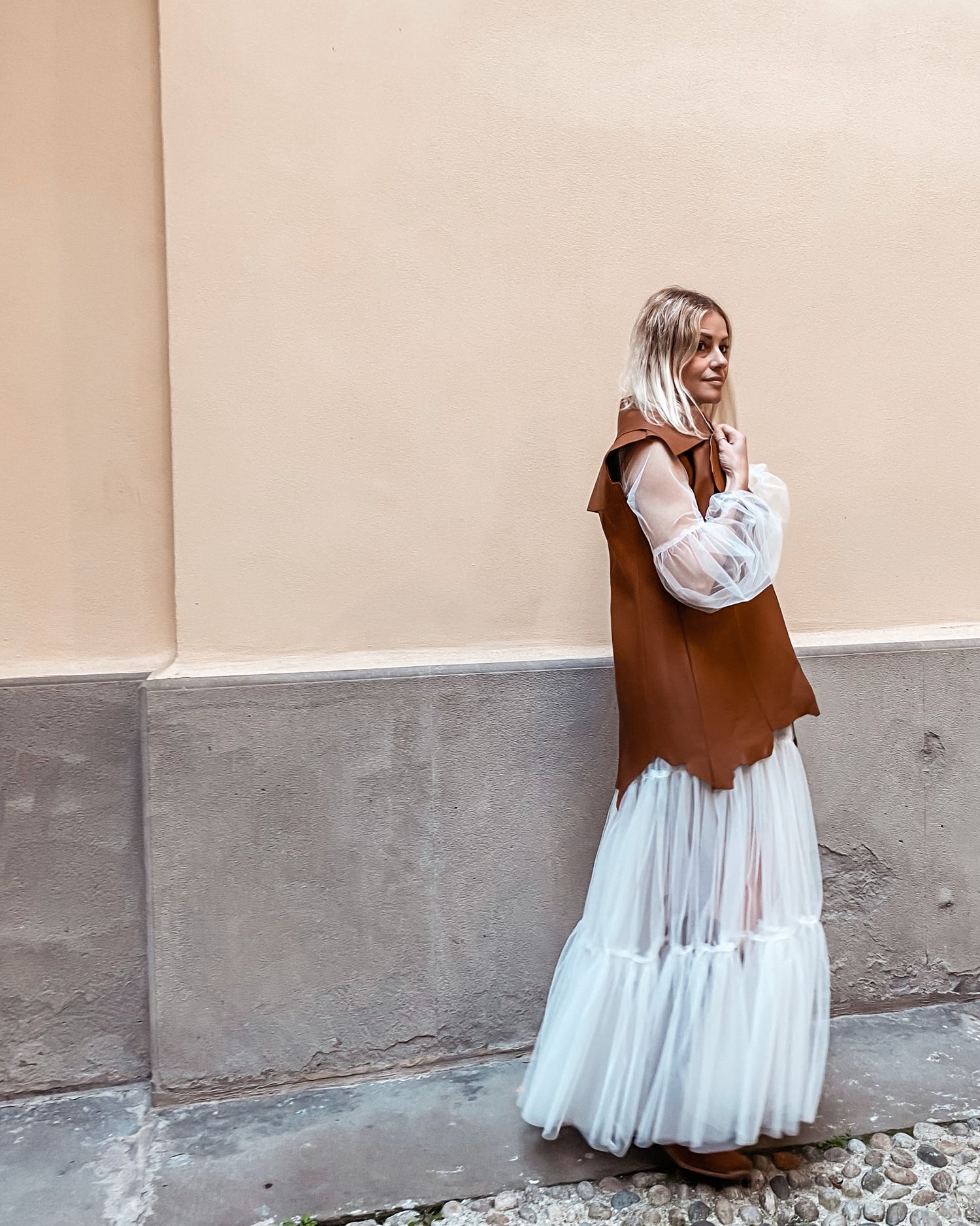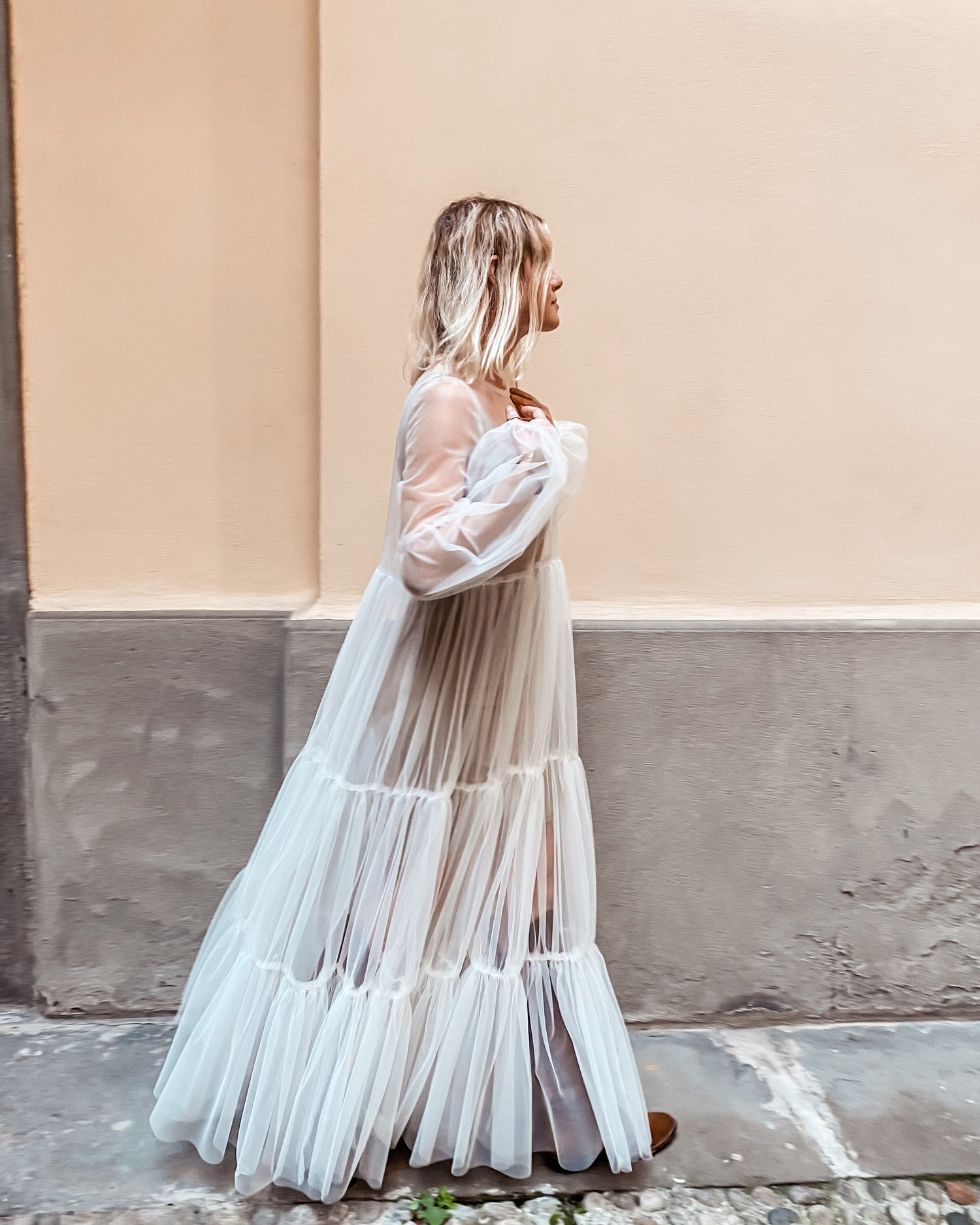 Luce - abito in tulle , balze , manica a palloncino + mini abito in Jersey stretch uso servizio . ( non comprende il gilet di nappa )