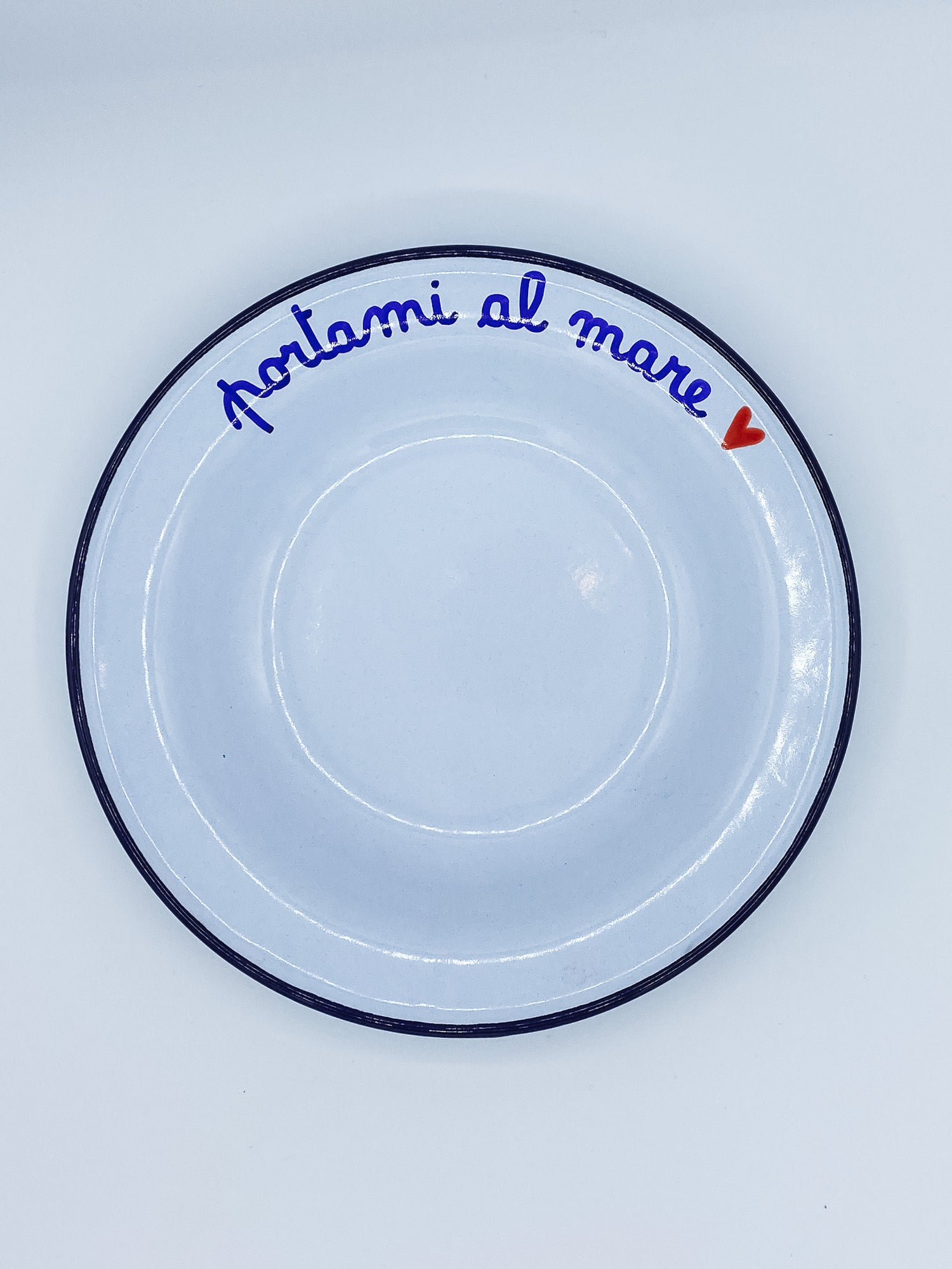 Piatto fondo smaltato, originario della Slovenia di fine ‘800, fa parte della collezione ‘a pranzo dalla nonna ‘.